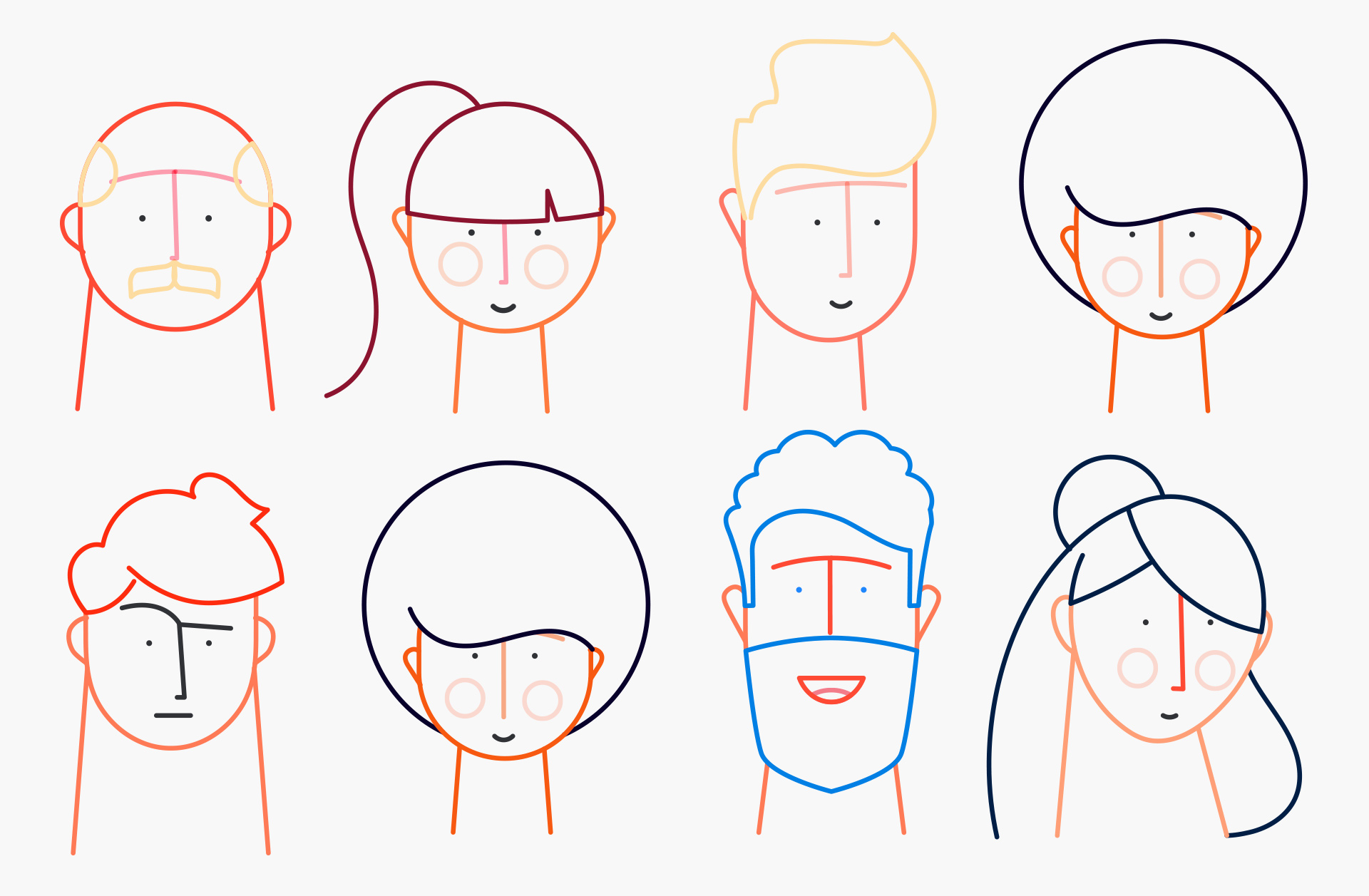 The next step was to create vector based sketches with a Wacom tablet and the brush tool in Adobe Illustrator. The brush tool combined with the Wacom gives a freedom to create dynamic strokes that really capture the movement and energy of freehand drawing. These initial vector sketches were then refined and joined together before being coloured. The characters are then split into layers, rigged and animated in After Effects.